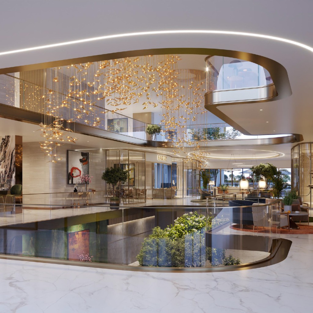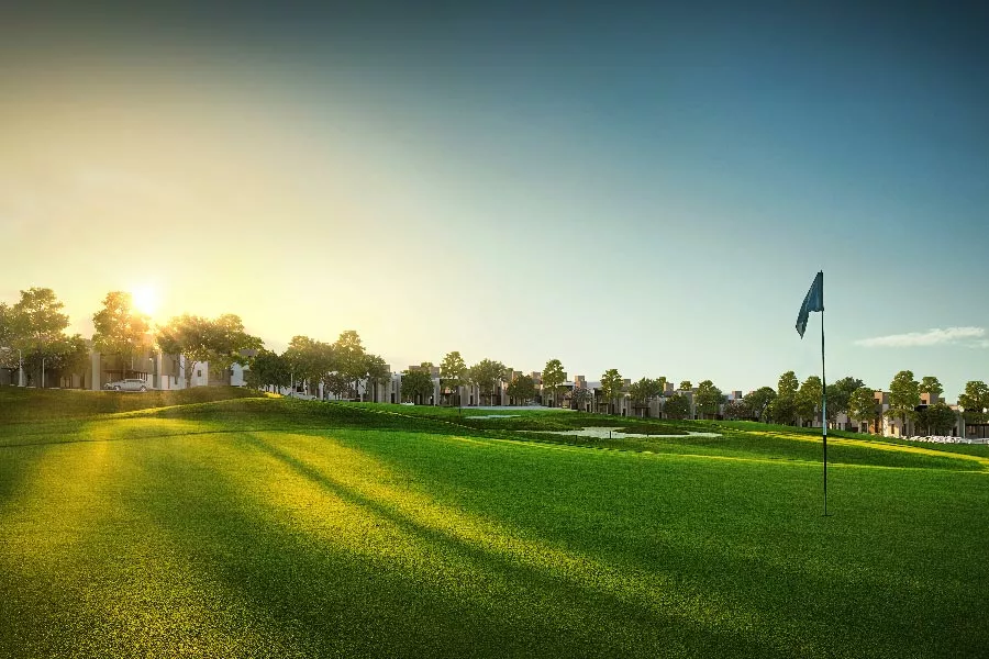 The project is designed with acres of green and open spaces, complemented by pristine water bodies and golf-themed landscapes, promoting a tranquil living experience